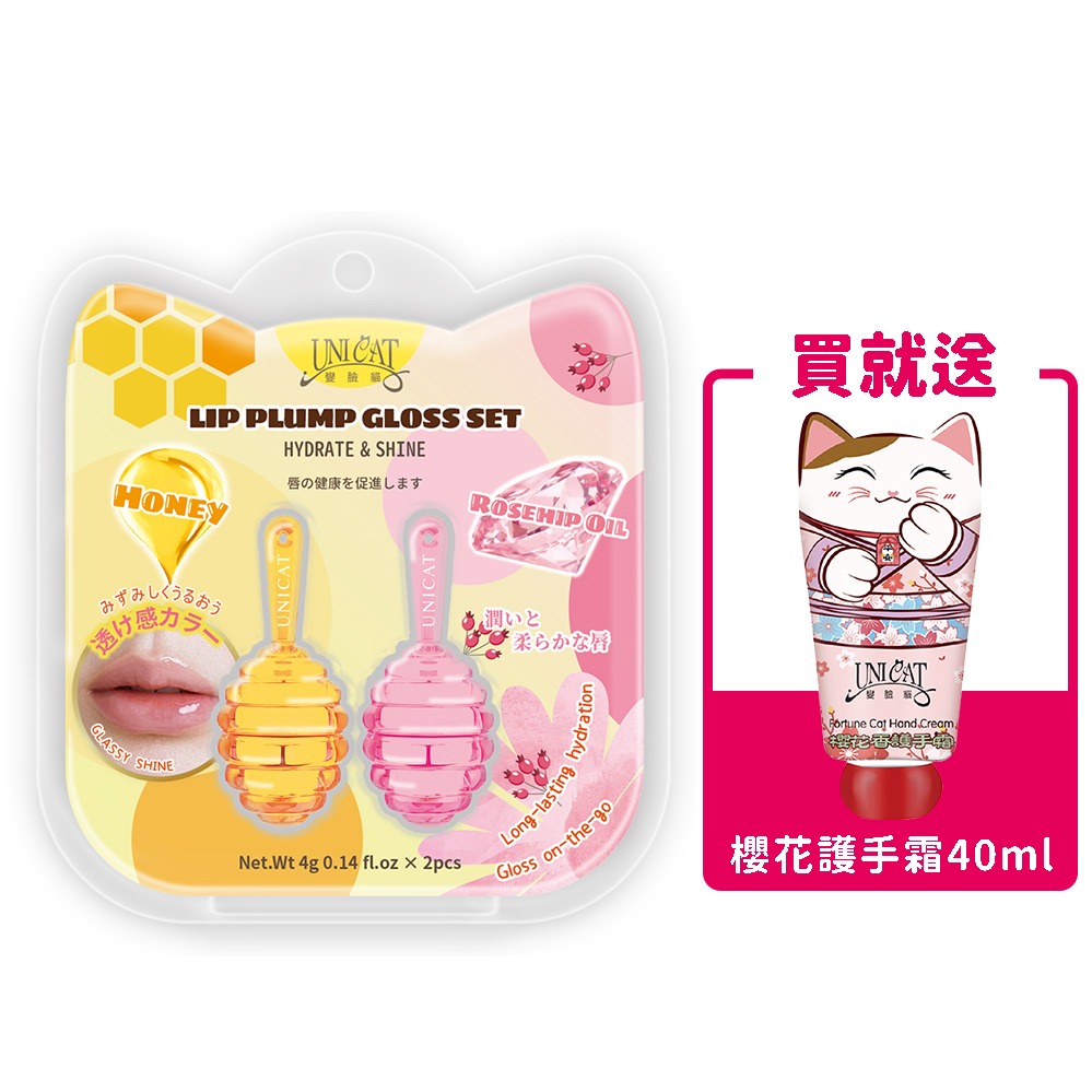 【UNICAT 變臉貓】人氣禮物|水光豐盈玻璃唇油(蜂蜜)+多彩蝴蝶結串珠手鍊禮盒 Y2K手機串珠鍊 吊飾 鑰匙圈 護唇