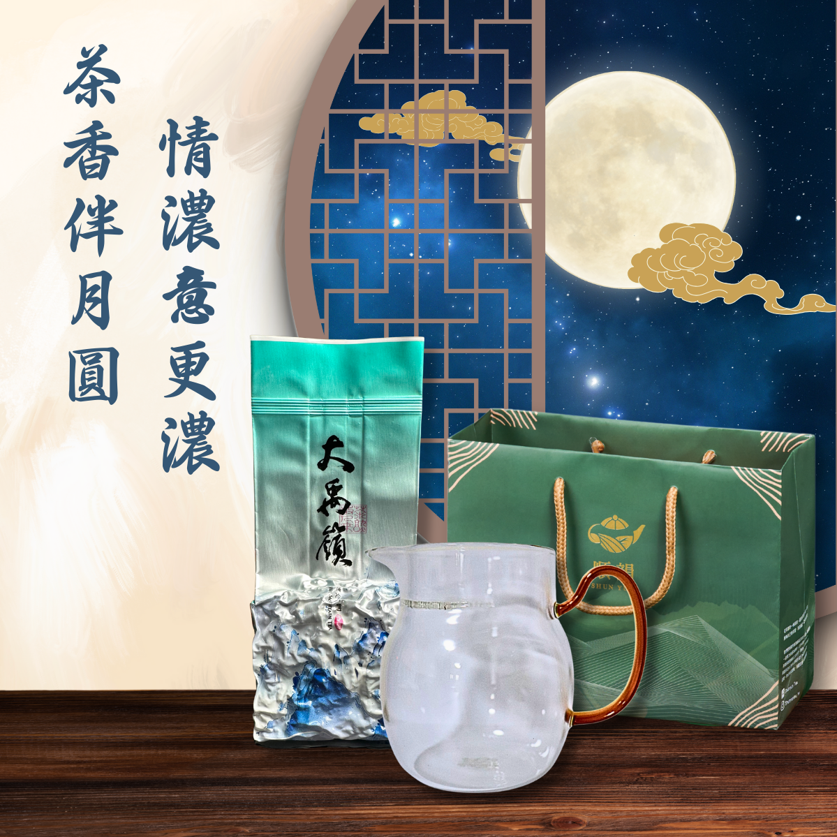 🚛快速出貨【順韻茶葉】[LINE禮物獨家]月下美人組 - 花月大禹嶺92K|月耳玻璃茶海|茶葉套組|生日禮物|送禮首選|茗茶傳情|暖心套組|祝福禮贈|環境友善茶葉|自家茶園產製銷