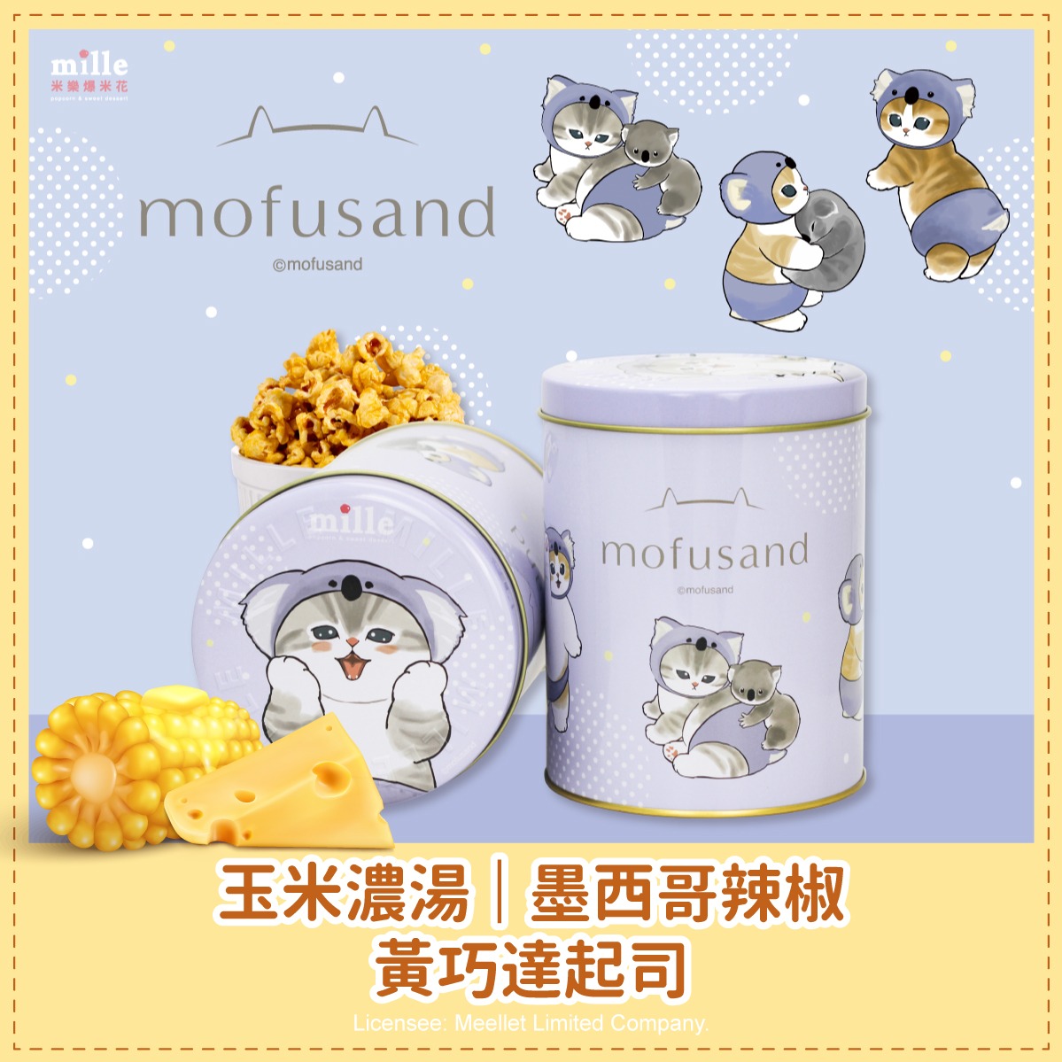 【米樂繽紛爆米花】貓福珊迪冰淇淋聖代罐爆米花