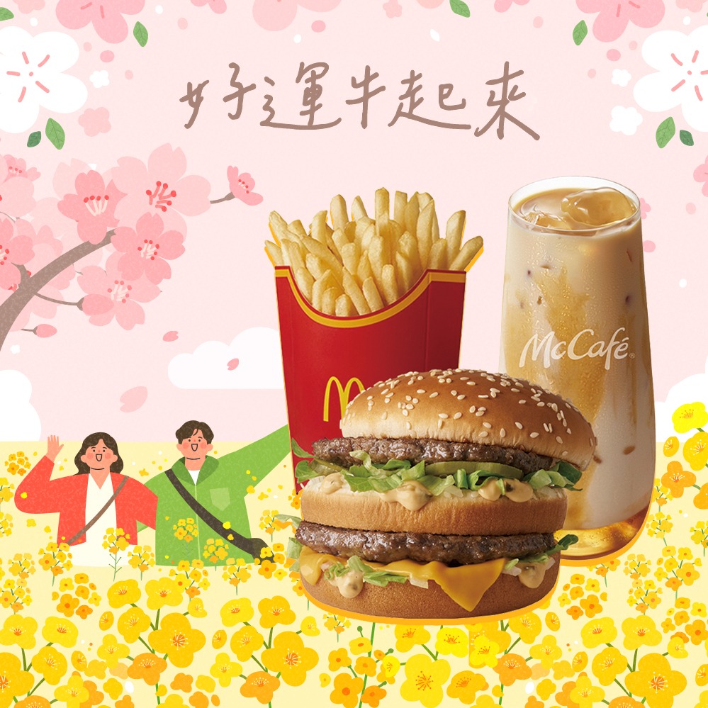 [麥當勞·2月限定麥心意]【麥當勞】大麥克+勁辣鷄腿堡+麥克鷄塊(6塊)+薯條(中)x2+可樂(中)x2好禮即享券