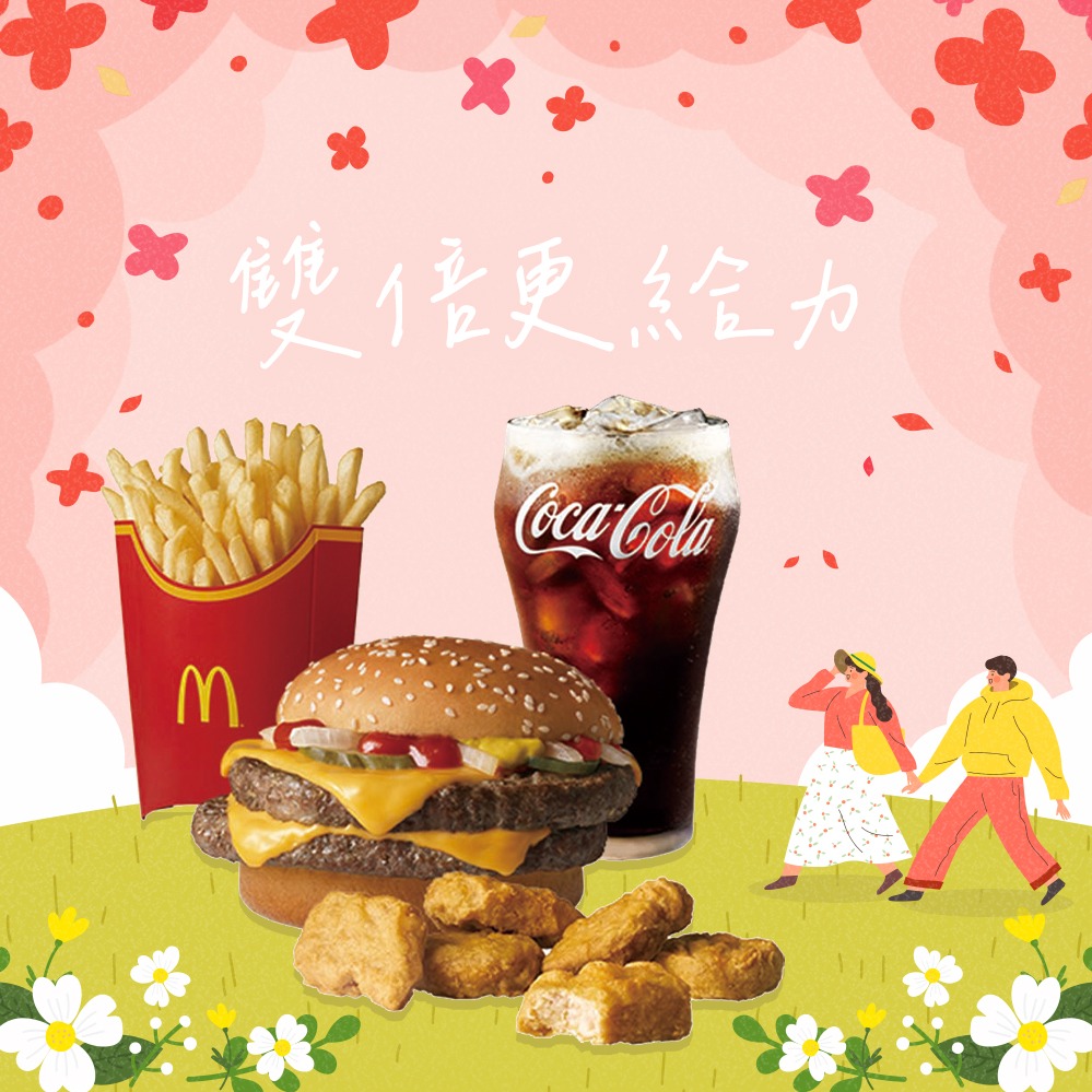 [麥當勞·2月限定麥心意]【麥當勞】大麥克+勁辣鷄腿堡+麥克鷄塊(6塊)+薯條(中)x2+可樂(中)x2好禮即享券