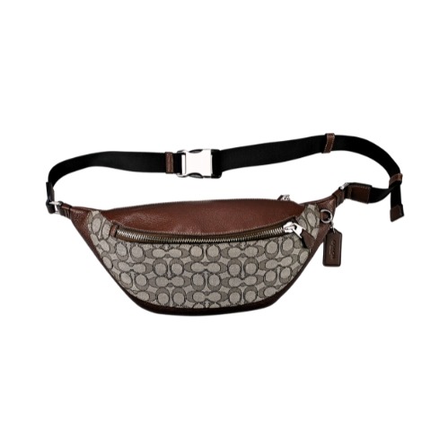 [平輸版] 【COACH】橄欖綠C LOGO浮雕拼接荔枝紋皮革寬弧形男士腰包 真品平輸