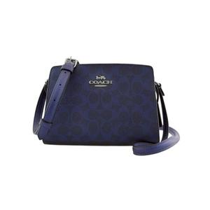 [平輸版] 【COACH】 GIA金屬珠光海軍藍C LOGO PVC硬殼斜背包 真品平輸