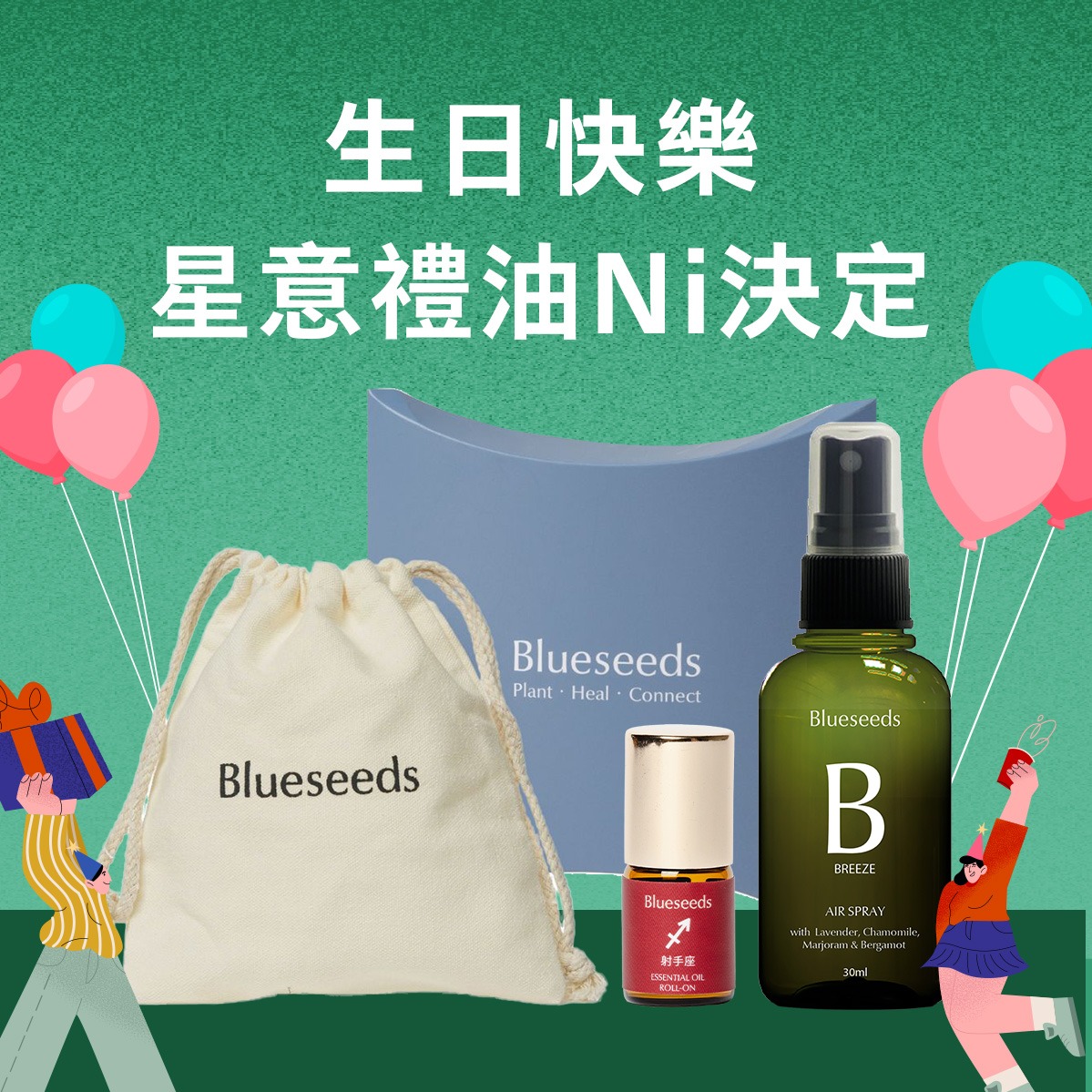 【Blueseeds】【收禮者可自選星座精油滾珠】生日快樂 1+1 獻給獨一無二的Ni l LINE禮物獨家 l 附品牌派盒+束口袋禮盒 l 芙彤園