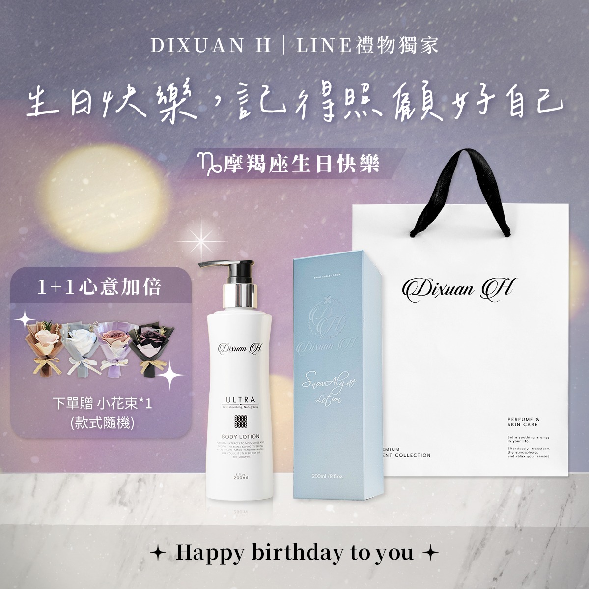 [祝你生日快樂❤️]送小花束【Dixuan H】精華奇肌身體乳-超緊實|『LINE禮物獨家組合』|客製化刻字服務(贈禮物袋)|質感輕奢香氛禮物|生日禮物 / 閨蜜送禮 / 情人節禮物 / 客製化禮物