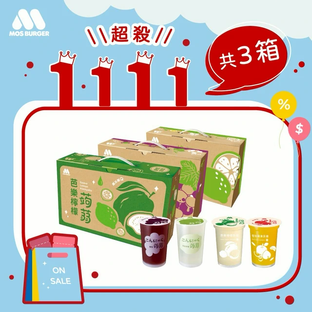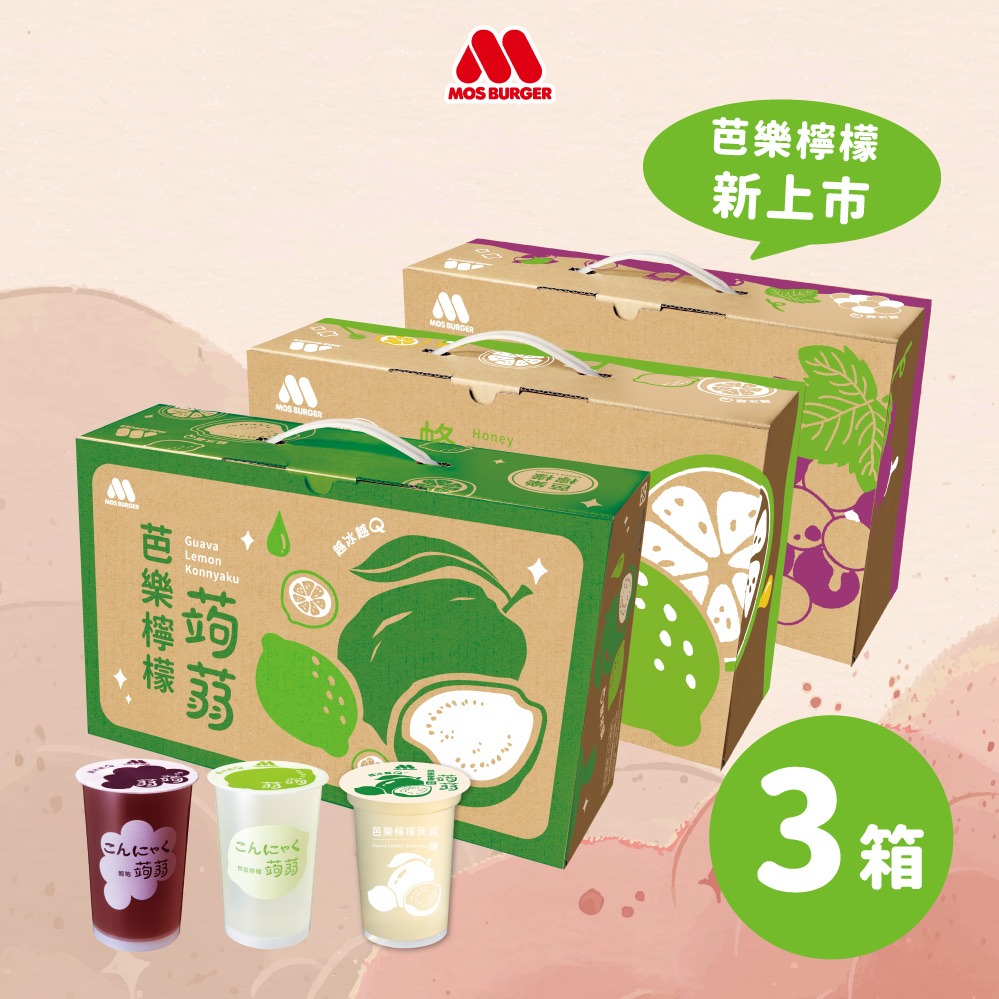 [快速出貨]『1+1心意加倍』【MOS摩斯漢堡】經典蒟蒻-葡萄/檸檬 /芭樂檸檬 /蜜桃蘋果(2箱共30杯)生日禮物|加油禮|禮盒