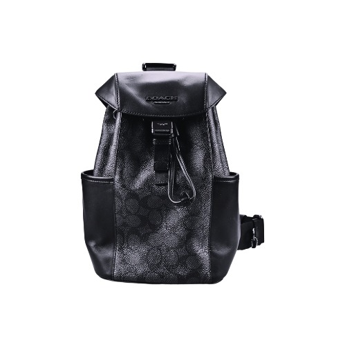 [平輸版] 【COACH】黑色荔枝紋皮革直式單肩後背胸包男包 真品平輸