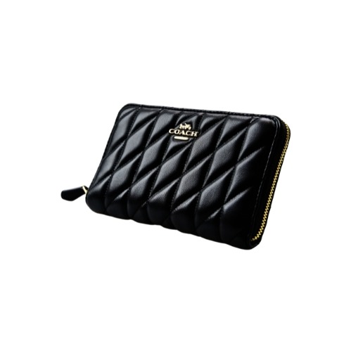 [平輸版] 【COACH】黑色荔枝紋附活動卡夾皮革手掛帶拉鍊長夾 真品平輸