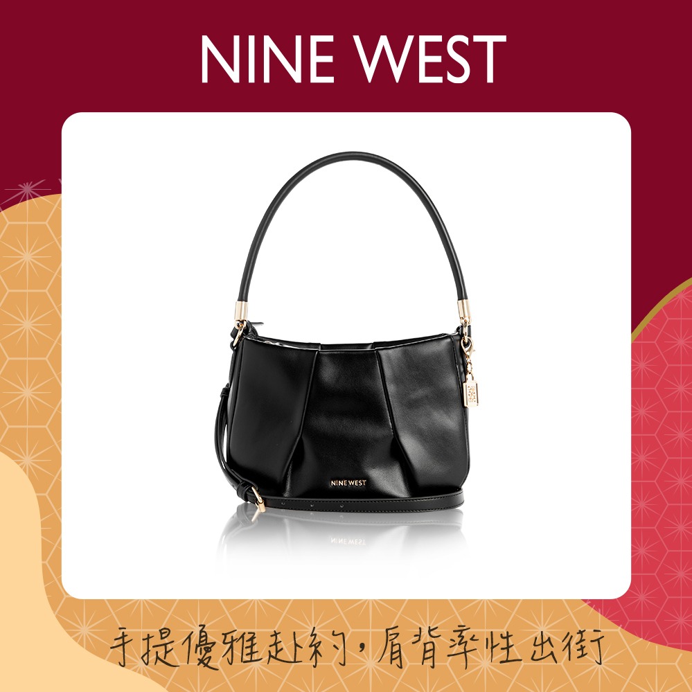 【NINE WEST】真皮肩背托特兩用包-黑色(1811)