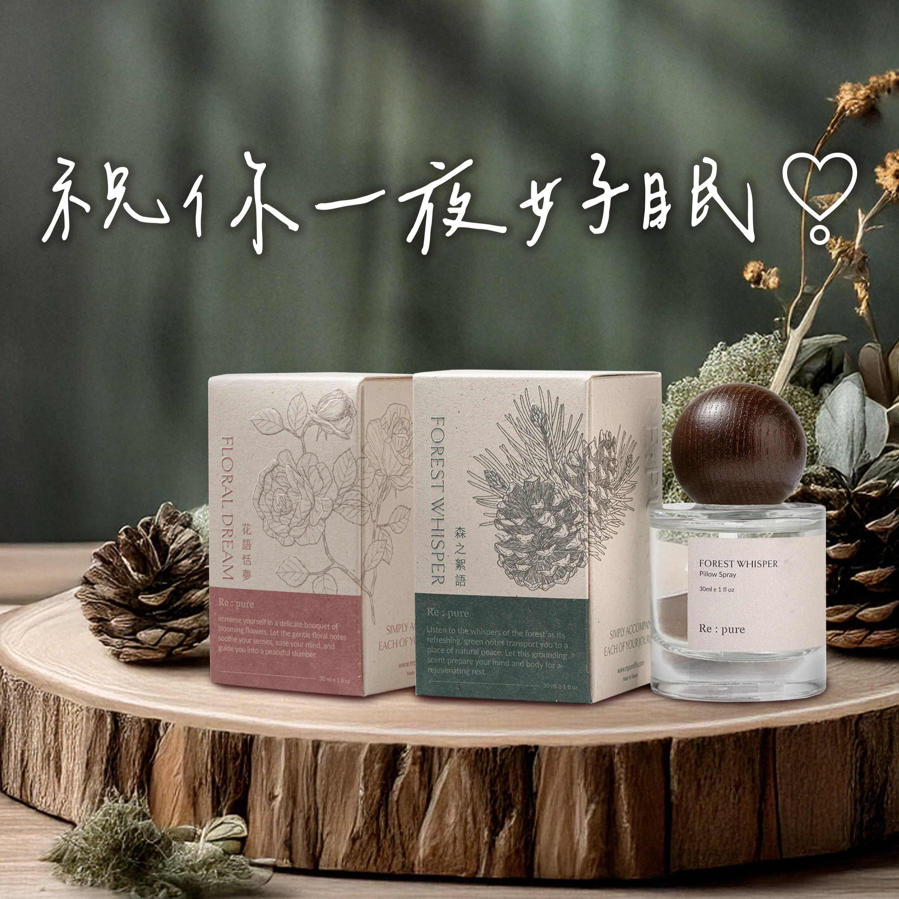 【快速出貨】💟好事花森💟【粹淬Re:pure】枕頭噴霧30ml兩入禮盒(花語恬夢+森之絮語) 好夢噴霧 淡香水 春節送禮 新年禮物 情人節禮物