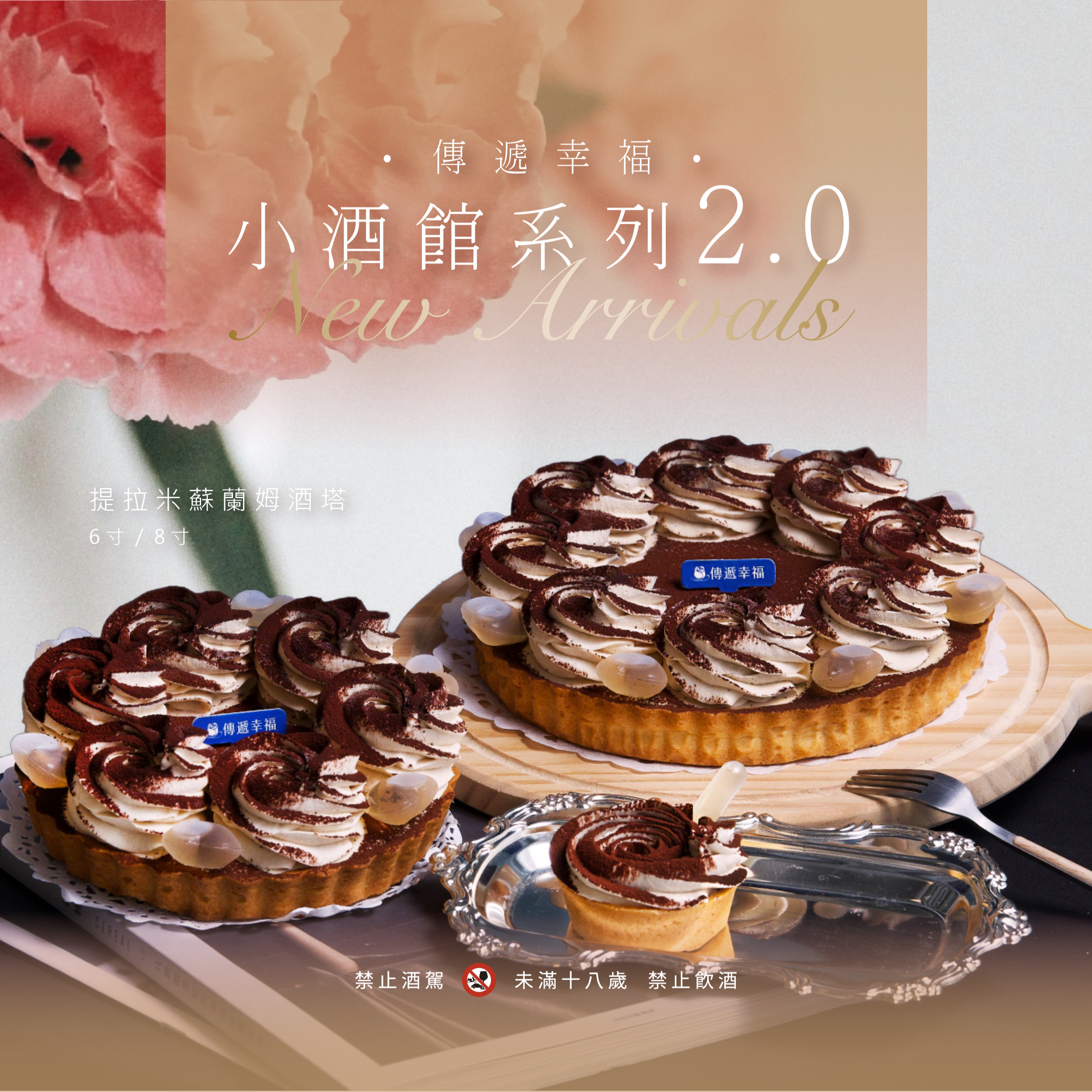 《3天內出貨》【傳遞幸福】{小酒館開幕啦!}提拉米蘇蘭姆酒塔+玫瑰荔枝橙酒塔(4入玫瑰塔禮盒)(幾米)「春節甜點」「草莓季甜點」「情人節甜點」