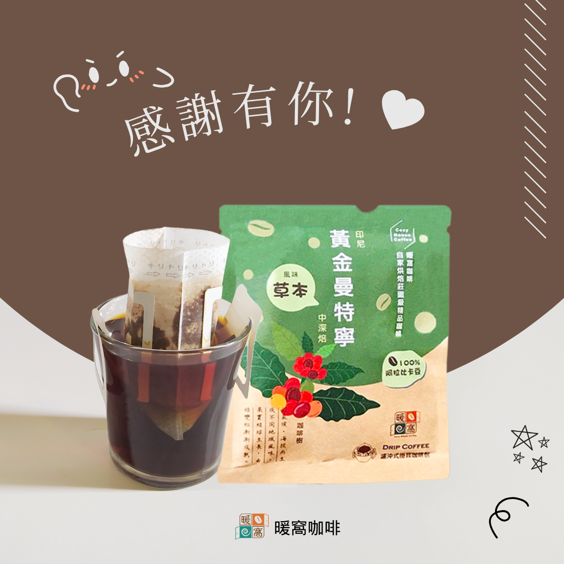【暖窩咖啡】中焙|甜蜜情人 配方咖啡 濾掛咖啡包 5包 (盒裝)