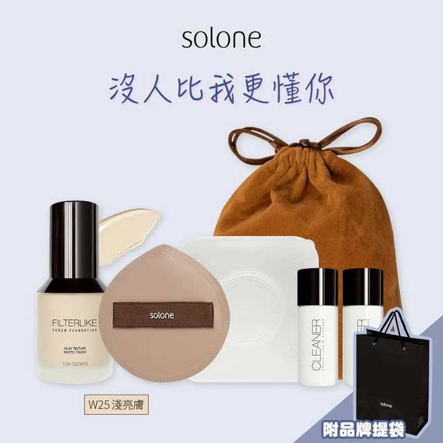 [收禮者自選色號]【Solone】純粹完美透紗底妝組🌟粉底液+珍珠蜜粉+舌型定妝刷+坡型粉底刷