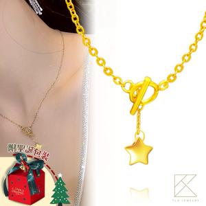【快速出貨】【TLH】聖誕節禮物 黃金墜OT項鍊 純金999 釦出幸福 約重0.03錢±0.01 (生日(射手座) 情人節 希望 幸運 祝福)