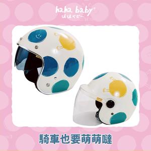 【hahababy】藍綠點點-米色亮面安全帽【大人、兒童可選】