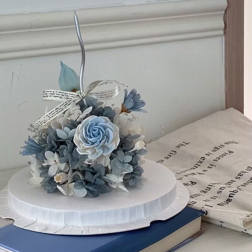 生日首選【Flora Flower】永生繡球花蛋糕- 海藍椰椰 (僅觀賞,不可食用) 生日 禮物 永生花 乾燥花 開幕