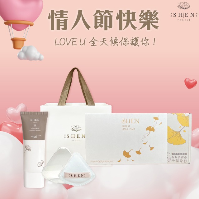[快速出貨]【森SHEN】情人節快樂💞裸光潤色防曬乳30g +粉撲 (享禮盒包裝+品牌紙袋)