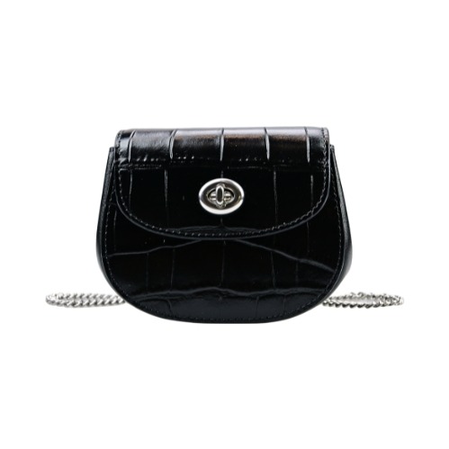 [平輸版] 【COACH】霧霾藍素面全皮釦式翻蓋WOC斜背皮革鏈帶包 真品平輸