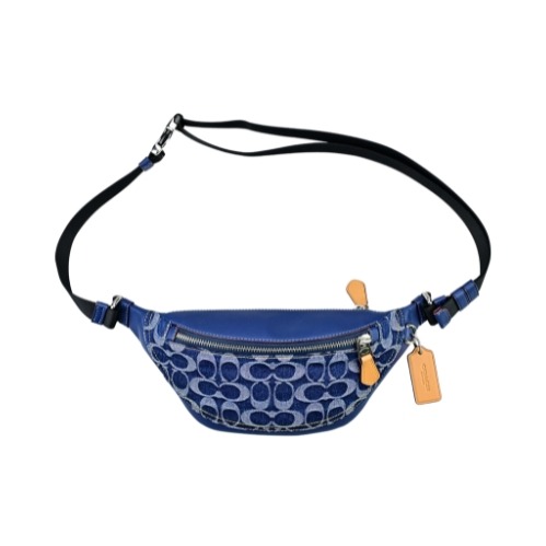 [平輸版] 【COACH】丹寧藍C LOGO PVC拼接深藍色素面皮革方型小款斜背男包 真品平輸