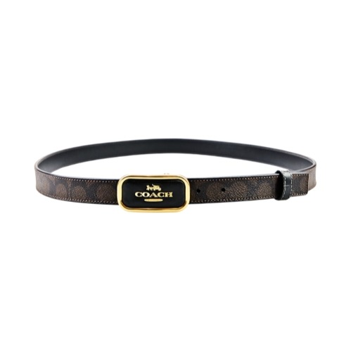 [平輸版] 【COACH】金色圓牌LOGO水鑽點綴湖水綠細版扣式手環 真品平輸