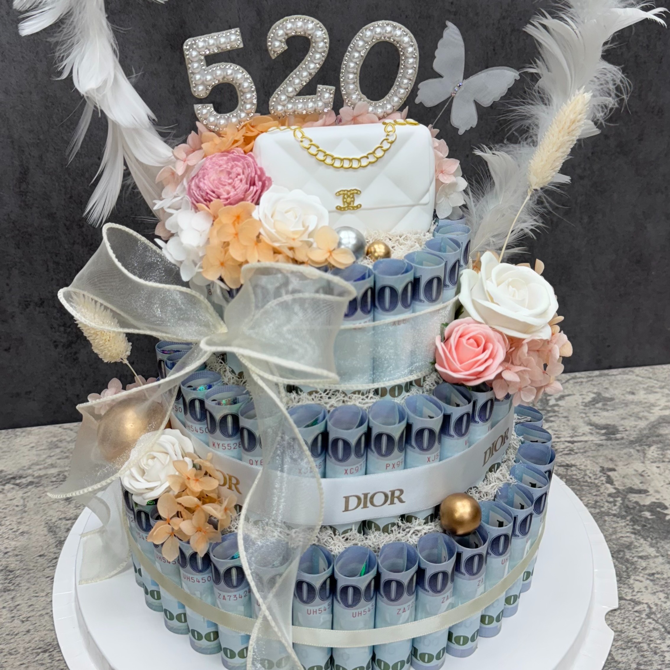 天蠍座【鹿可Look】傲雪凌霜🩵(三層鈔票蛋糕)|花禮 香皂花 永生花 乾燥花 玫瑰熊 有錢花 鈔票花 聖誕 求婚 情人節 母親節禮物 新年花禮 春節花禮 過年送禮 畢業花束