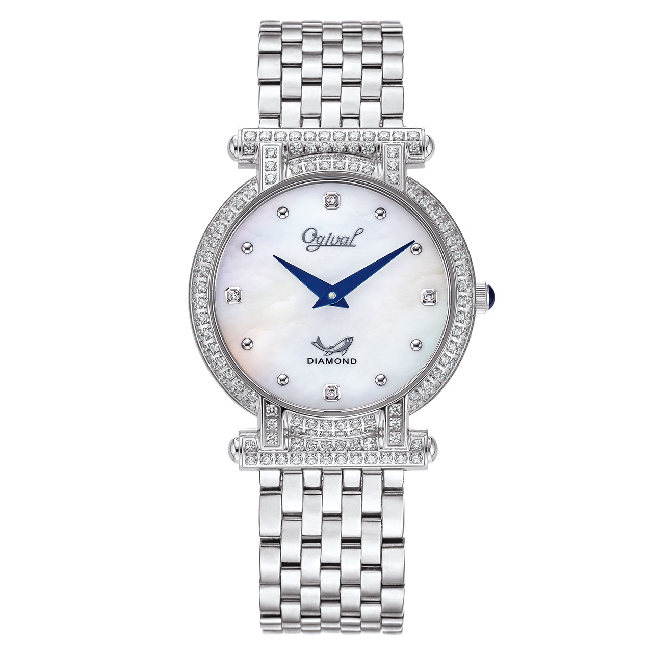【Ogival 愛其華】花中花天然寶石珠寶錶 (380-55.1DLW) 白貝
