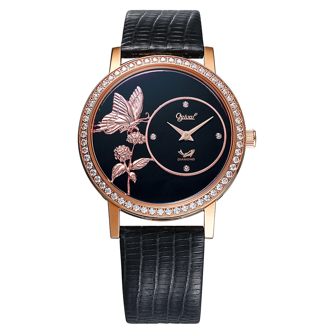 【Ogival 愛其華】時尚女伶晶鑽腕錶 (38053DLW) 黑玫瑰銀