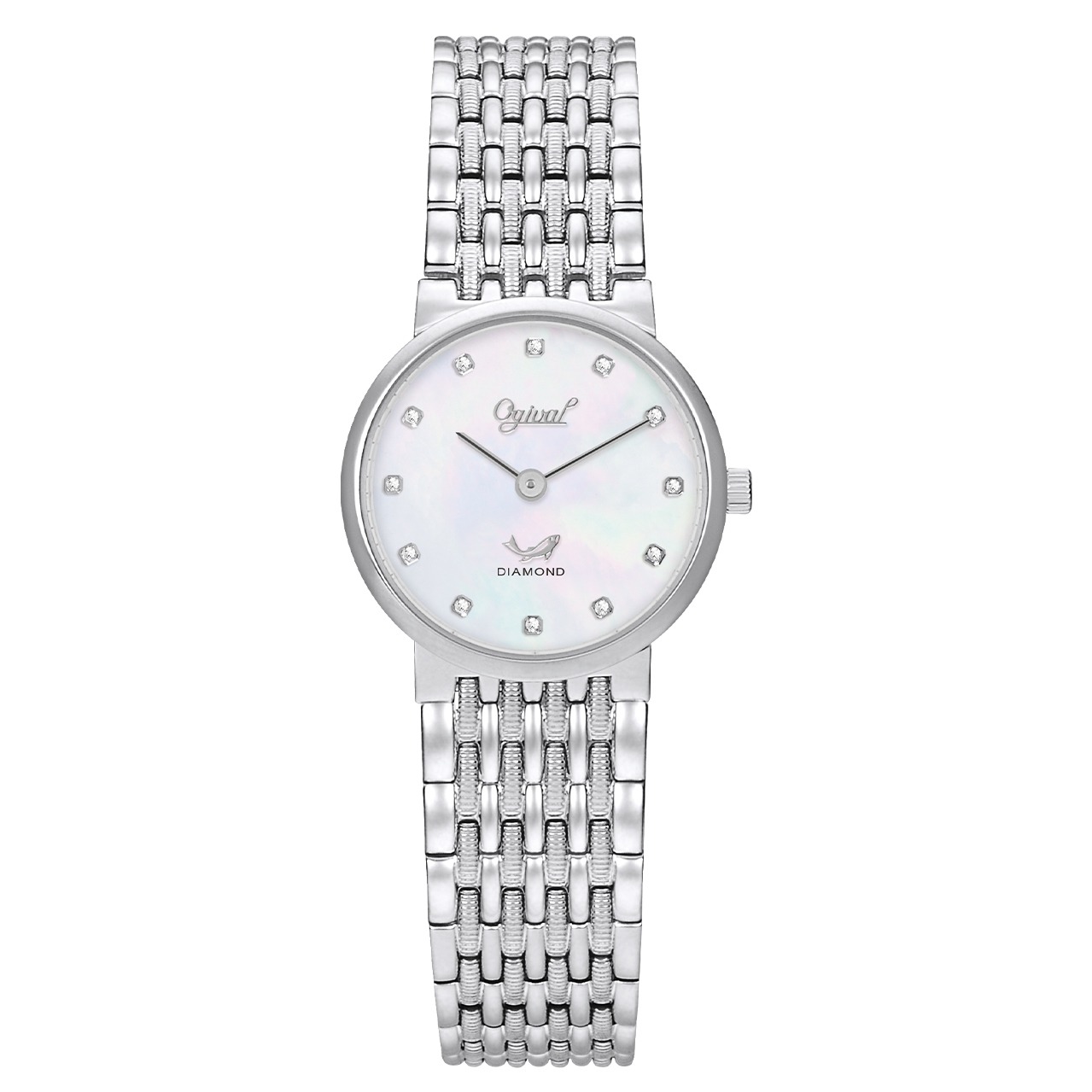 【Ogival 愛其華】極致珍愛真鑽時尚腕錶 (385-022DLW) 銀白珍珠貝