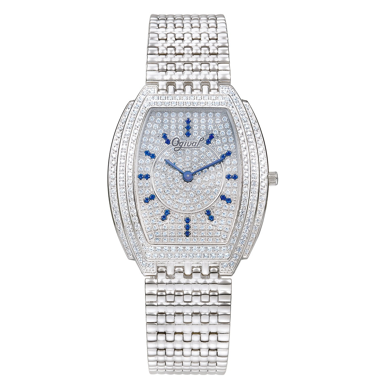 【Ogival 愛其華】花中花天然寶石珠寶錶 (380-55DLW) 藍寶白面