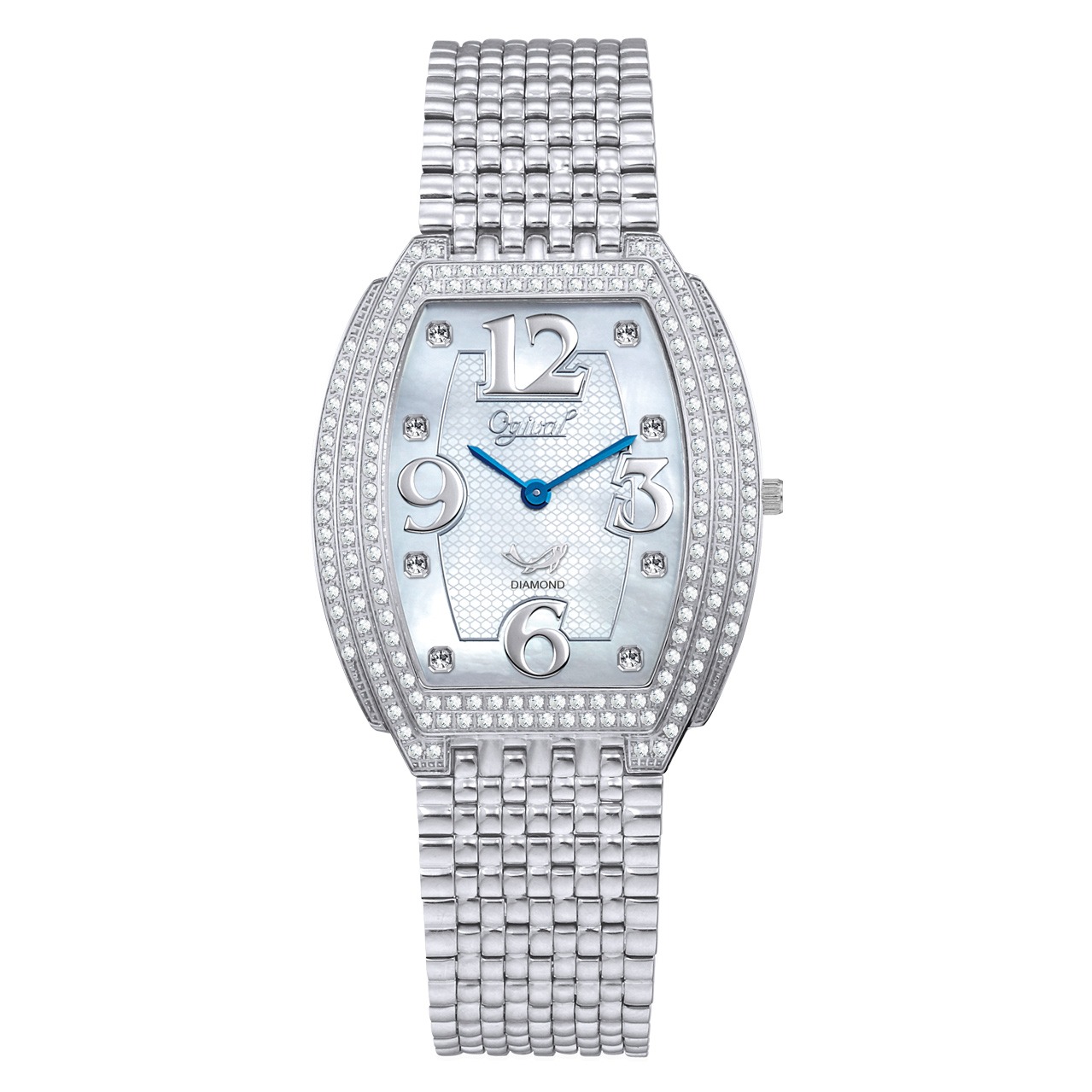 【Ogival 愛其華】花中花天然寶石珠寶錶 (380-55DLW) 藍寶白面