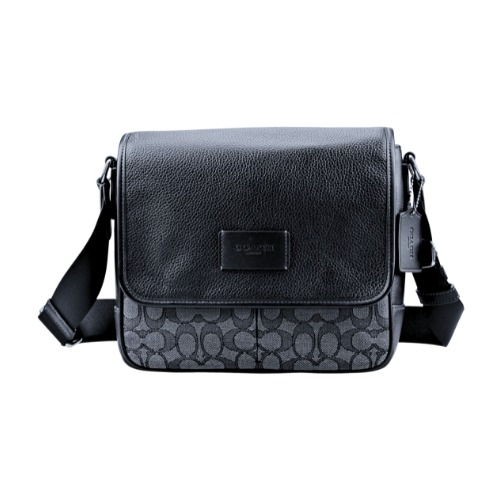 [平輸版] 【COACH】 JOSIE黑色防刮皮方翻蓋橫式迷你斜背包 真品平輸