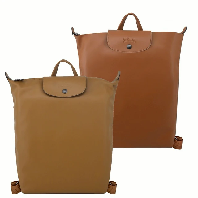 [平輸版]LONGCHAMP LE PLIAGE系列再生尼龍摺疊後背包(中/白蘭地酒)真品平輸
