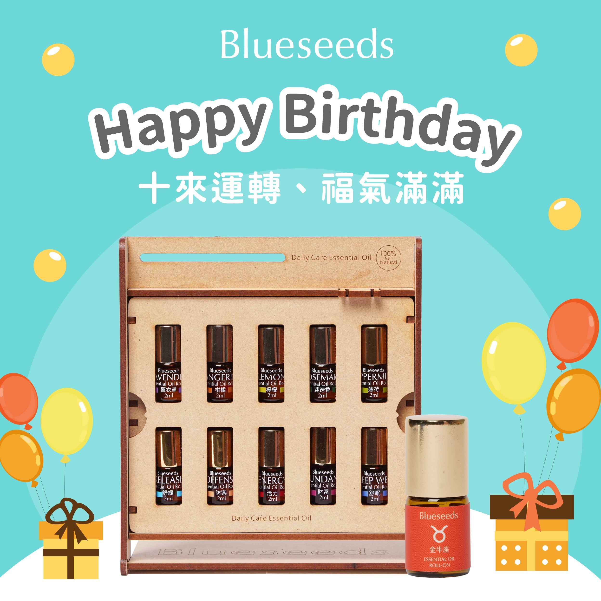 【Blueseeds】【收禮者可自選星座精油滾珠】生日快樂 1+1 獻給獨一無二的Ni l LINE禮物獨家 l 附品牌派盒+束口袋禮盒 l 芙彤園