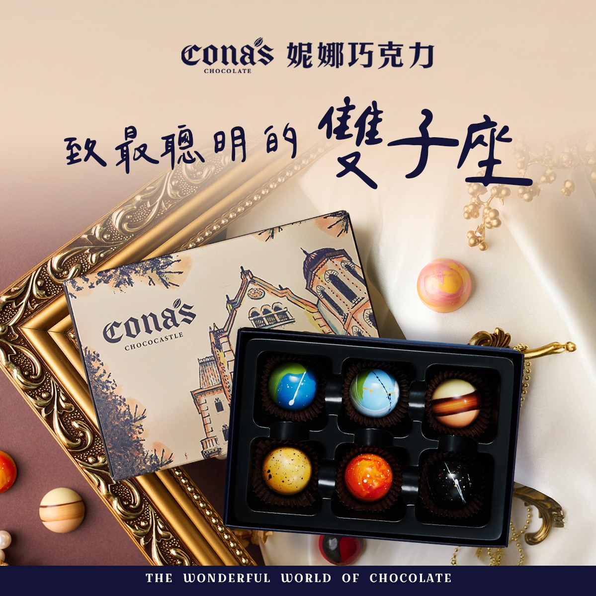 雙子座生日快樂🎂【Cona's妮娜巧克力】星座巧克力 (6入隨機/盒)