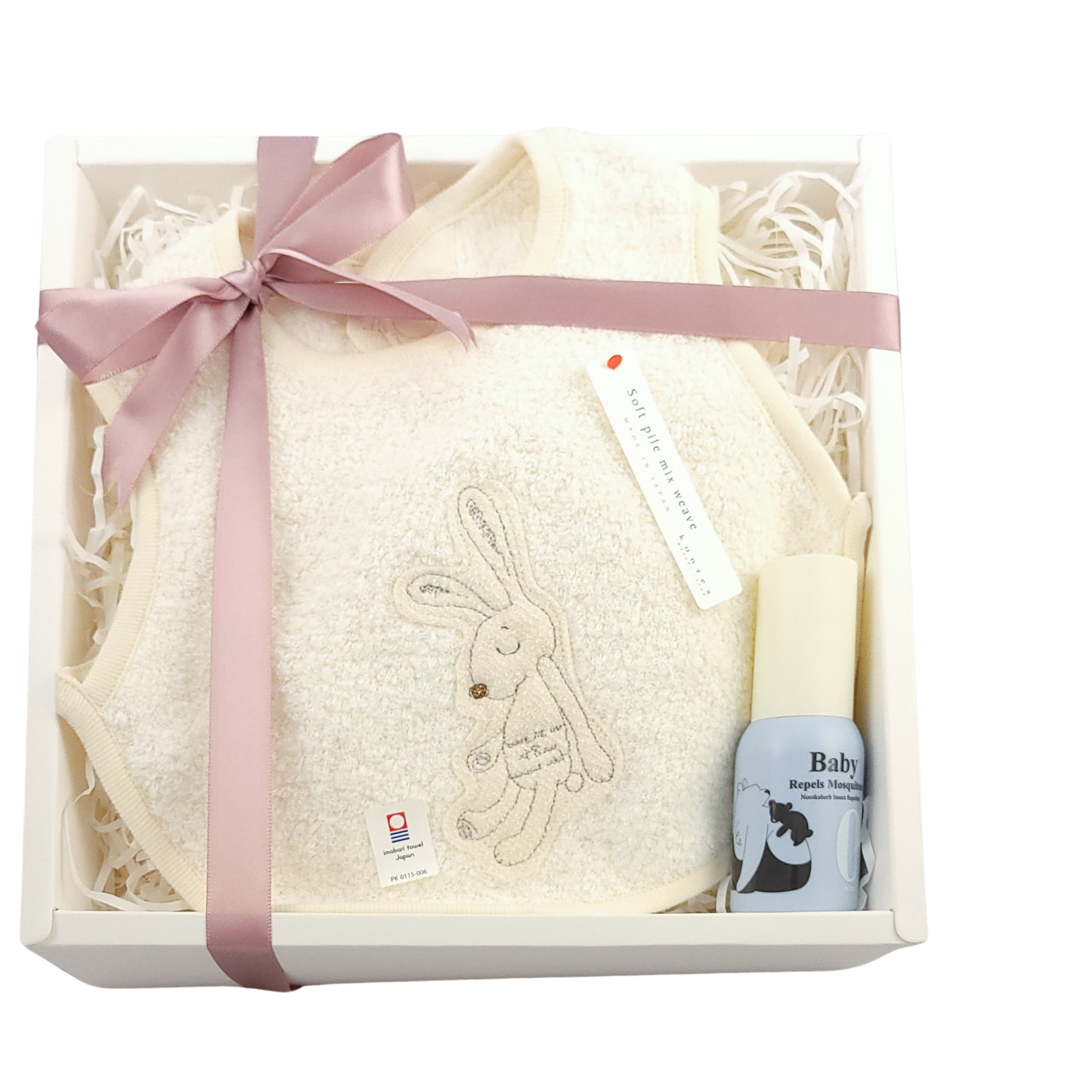 [AUROS光子天使] 諾卡草本新生兒禮盒 - 日本kontex - 撫燃小方巾兔子款 2入 + 諾卡草本秀秀霜