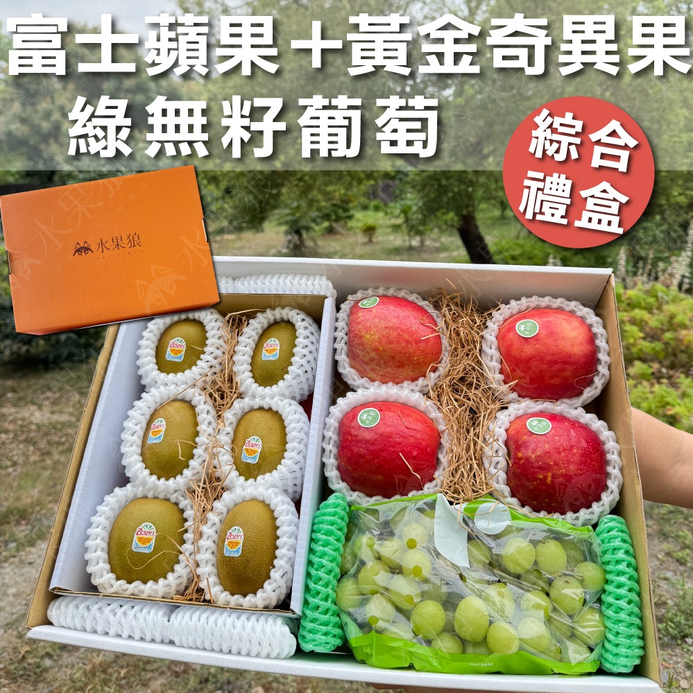 【水果狼】富士蘋果6顆+綠無籽葡萄2包 綜合禮盒 水果禮盒 新年禮盒
