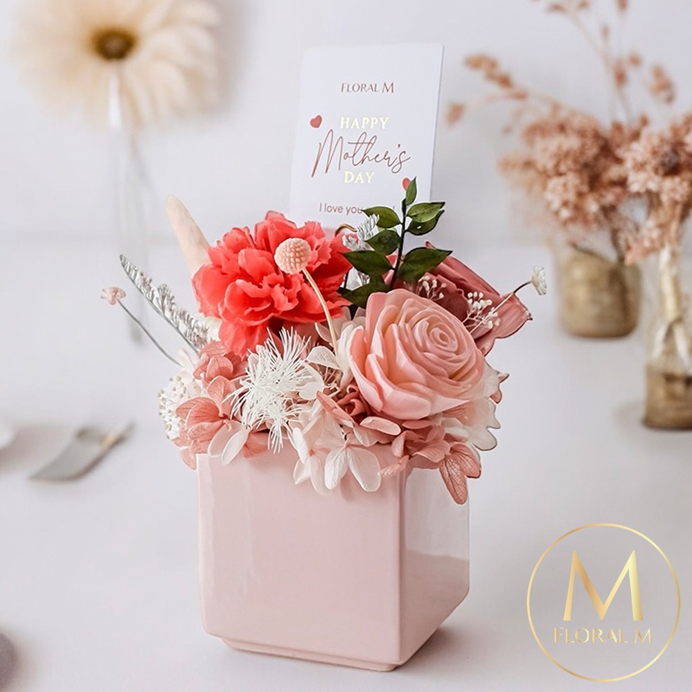 【閒暇人花藝設計】永生盆花 有太陽的日子 奶油粉 / 畢業花束 情人節禮物 生日禮物 母親節禮物 結婚禮物 開幕賀禮 喬遷禮物 升遷賀禮