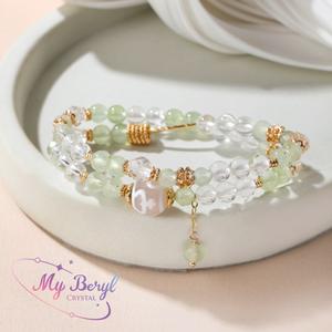 【My Beryl 水晶】白水晶 x 葡萄石 x 天珠【翠光晨露.智慧篇章】水晶手鍊|心靈平靜|淨化能量