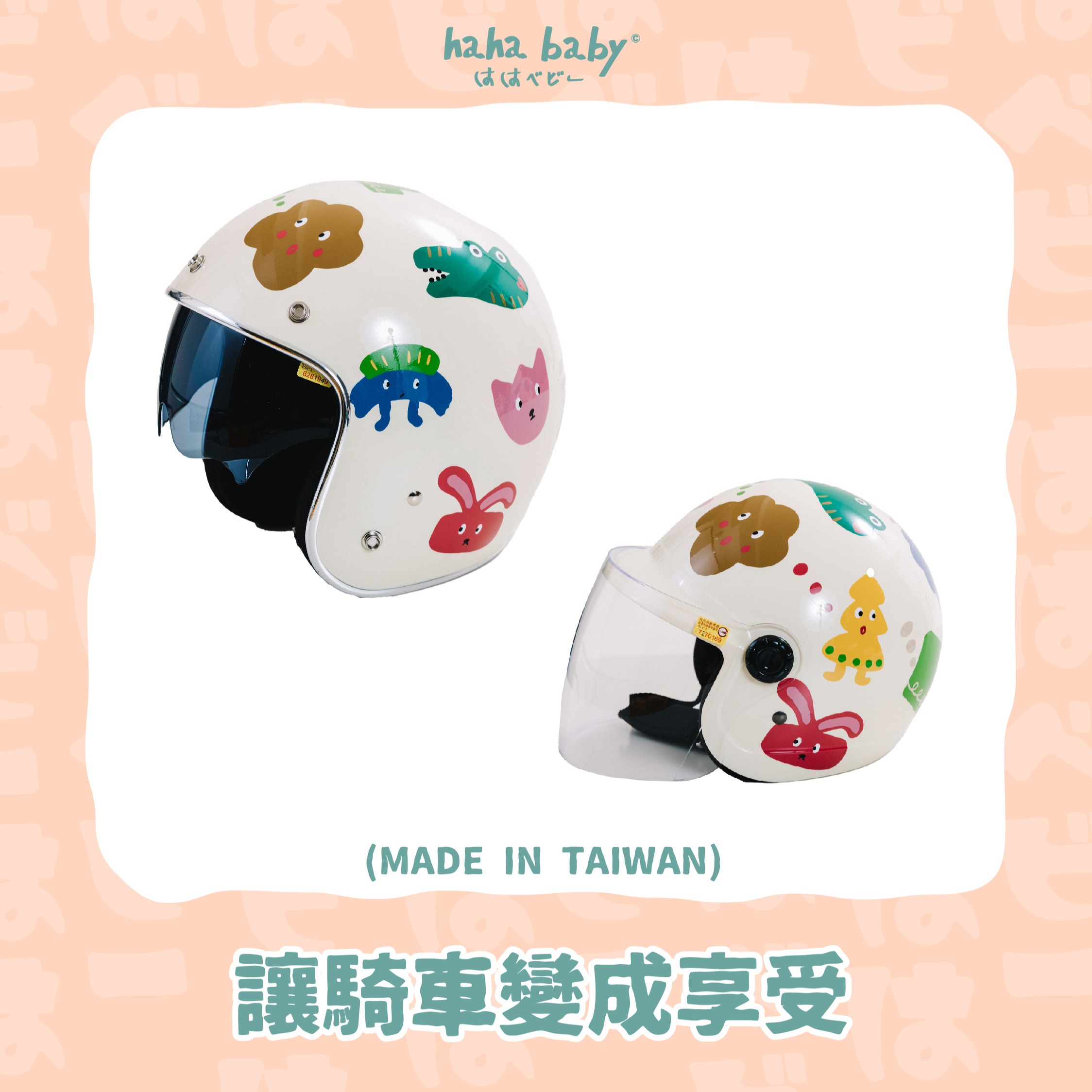 【hahababy】彩色心花開-米色亮面安全帽【大人、兒童可選】