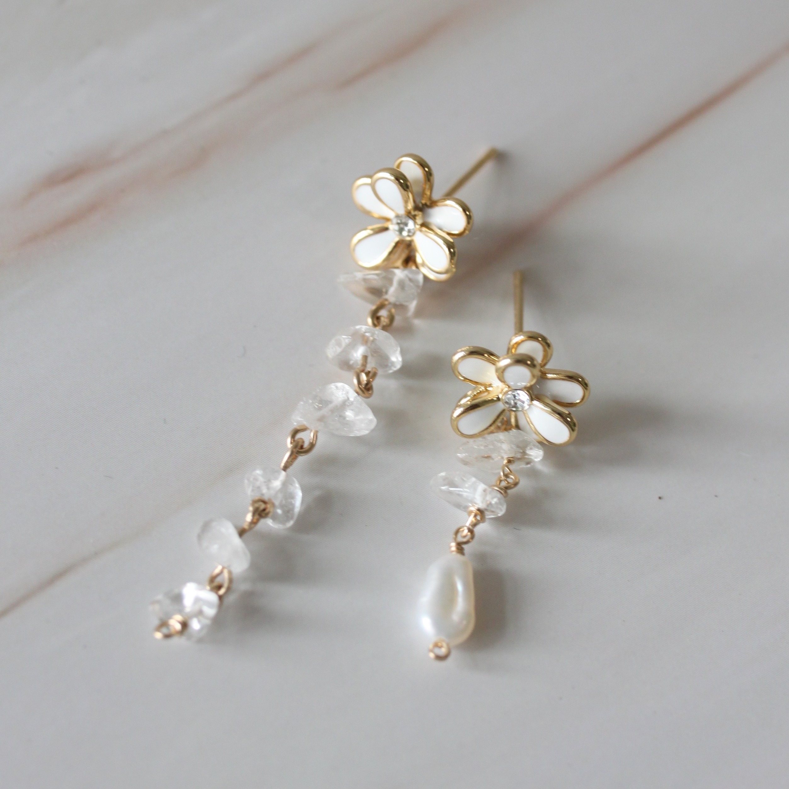 【One N Only】 【母親節禮物】穿越迷霧-天然水晶 天然珍珠耳環14KGF注金