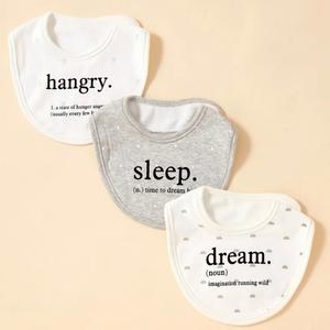 3入組 美式可愛 嬰兒英文字母圖案圍兜套裝 新生兒禮物 BabyShower 滿月禮