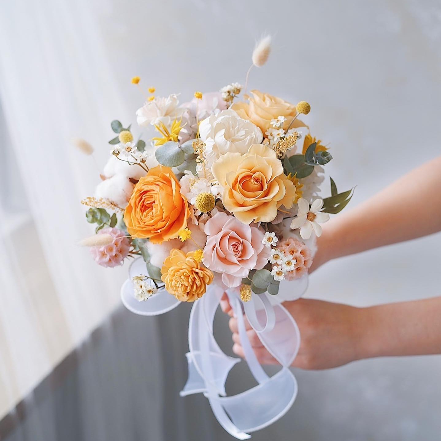 【GOODLILY flower】甜橙粉黃色系韓式輕捧花 (永生花&乾燥花) 登記 求婚 告白