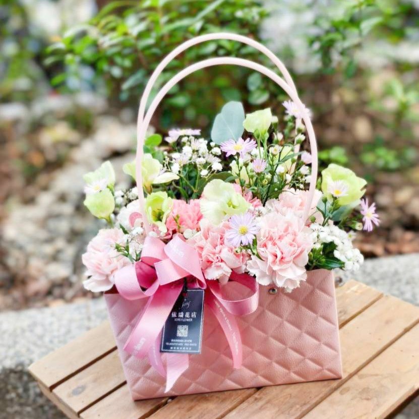 【ELLESHOP】 生日禮物、畢業花束、告白禮物❤️ (限雙北配送) 白色花藝-康乃馨鮮花束-溫柔粉