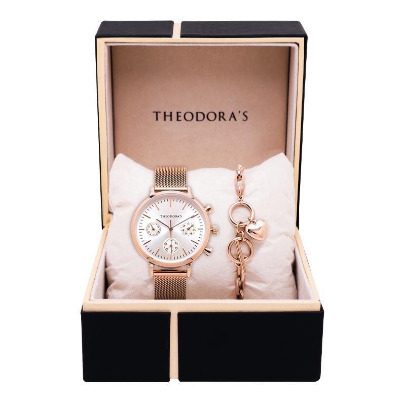 RELAX TIME 三眼腕錶 黑潮優雅|玫瑰金 (RT-81-2)