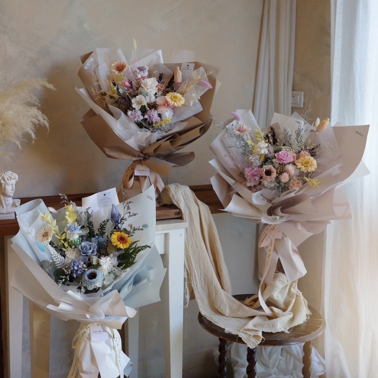 【閒暇人花藝設計】有太陽的日子永生玫瑰花束 藍天 L / 畢業花束 情人節禮物 生日禮物 母親節禮物 結婚禮物 開幕賀禮 喬遷禮物 升遷賀禮