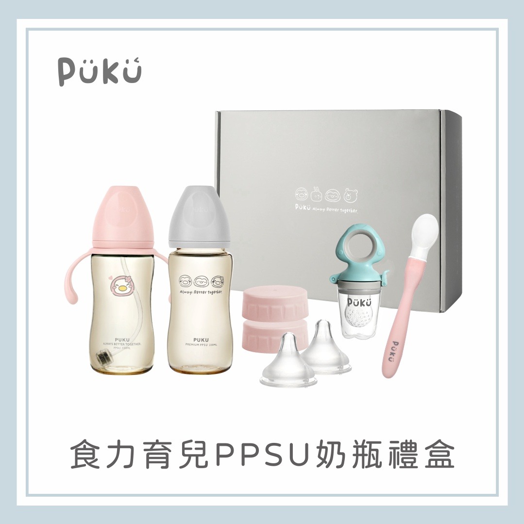 【PUKU】食力育兒PPSU奶瓶禮盒(靜藍)│ 彌月禮、新生禮盒、奶瓶 │