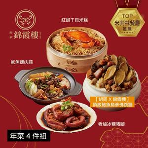 [指定區間出貨]圍爐年菜🍲【錦霞樓】年菜4件組(紅蟳米糕+鮑魚烏蔘佛跳牆+冰糖豬腳+魷魚螺肉蒜)(含運)【墊腳石】