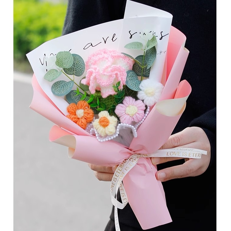 💝情人節快樂💝快速出貨【COZY PLUS+】創意手工編織玫瑰花毛線花束(附提袋)JAN14#CP2011 情人節禮物 女朋友禮物 閨蜜禮物 生日禮物