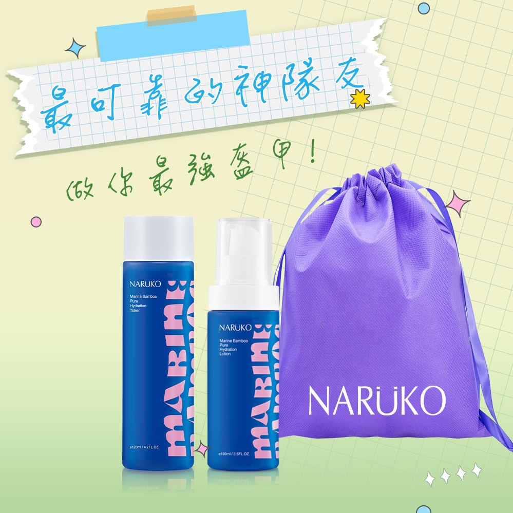 給你最溫柔呵護🌟【牛爾NARUKO】海生竹速效補水舒敏組(精華30ml+水凝膜50g+NARUKO束口袋)水瓶座生日快樂