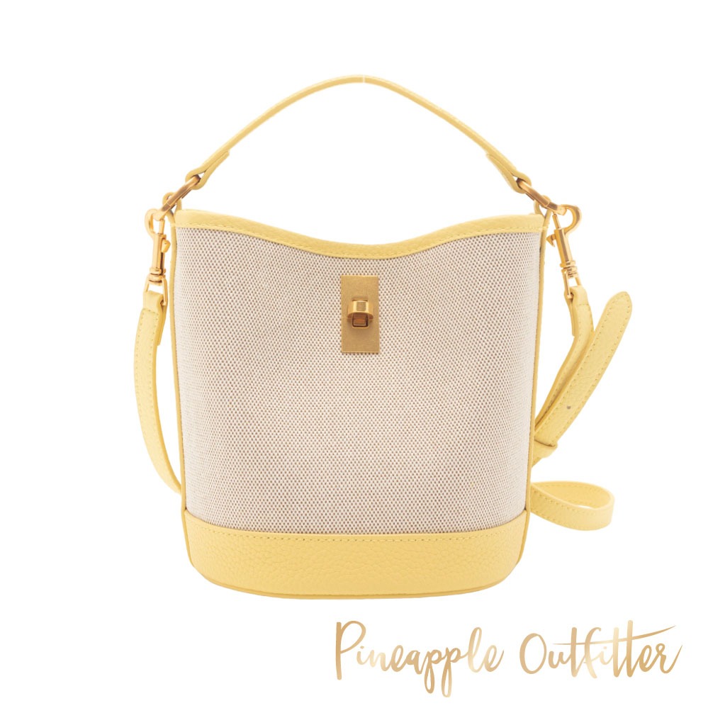 [平輸版] 【COACH】 淺卡其C LOGO 拼接荔枝紋皮革帆布織帶手提/斜背小款立體方包 真品平輸